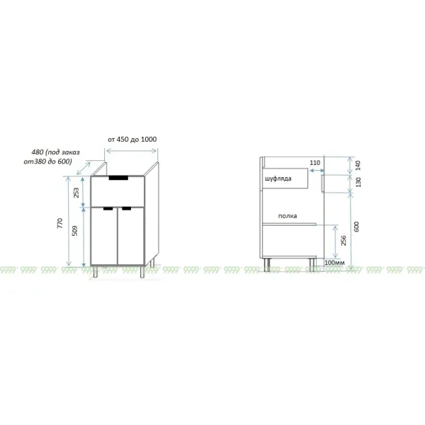 Столешница, умывальник приобретается отдельно (цену уточнять у менеджера).