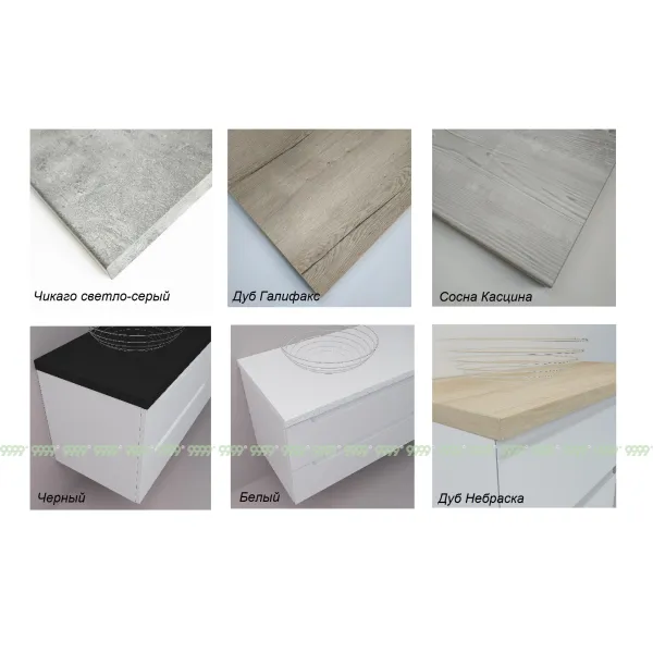 Цвет столешницы: белый (или на выбор: черный, бетон чикаго светло-серый, сосна касцина, дуб небраска, чиполлино черый, дуб давос трюфель, дуб галифакс.