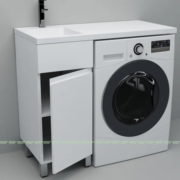 Монтаж умывальника со столешницей из литьевого мрамора над стиральной машиной.