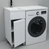Посередине умывальника можно (но не обязательно) добавить дополнительную точку опоры – брусок (он входит в комплект с умывальником Люкс) или любую другую подложку (на Ваше усмотрение), которые ложатся на вторую стенку тумбы (со стороны стиральной машины) и служат добором высоты от тумбы до умывальника. Это облегчит установку, приподнимет край и зафиксирует середину умывальника-столешницы на тумбе.