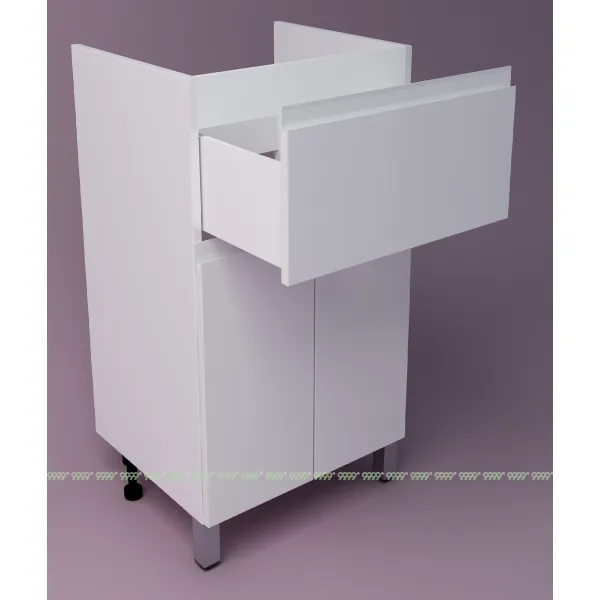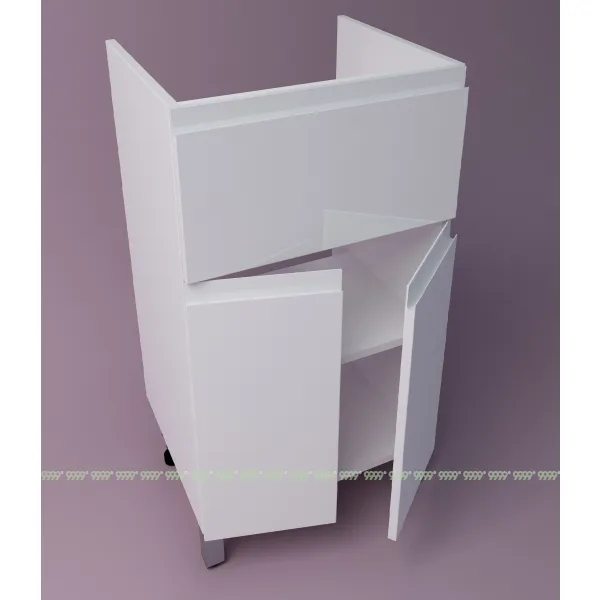 функционал: напольная тумба, 1 выдвижной ящик с плавным ходом и закрыванием (доводчики нижнего монтажа - Boyard), две распашные дверцы (с плавным ходом и закрыванием).
