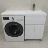 Монтаж умывальника со столешницей из литьевого мрамора над стиральной машиной.