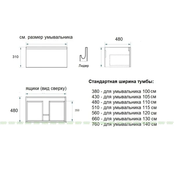 Умывальник в размере 100 см(левый или правый) приобретается отдельно (цену уточнять у менеджера).