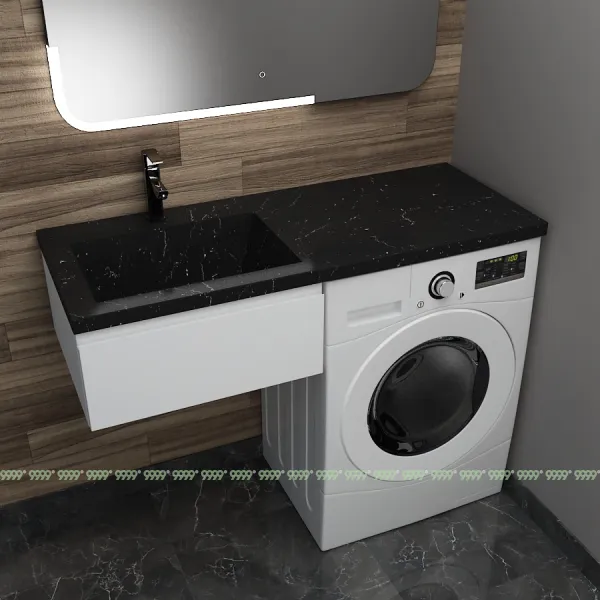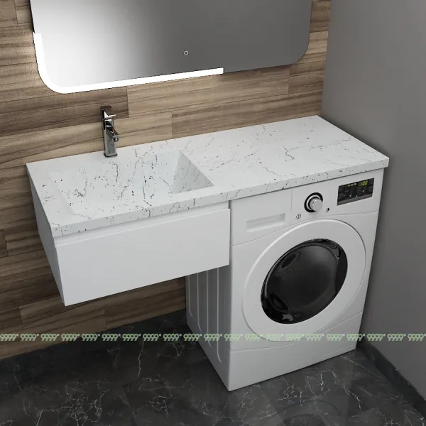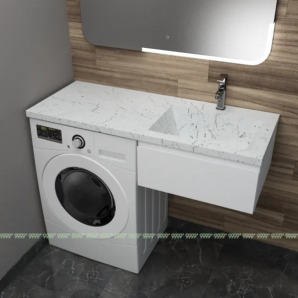 Монтаж умывальника со столешницей из литьевого мрамора над стиральной машиной.