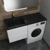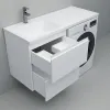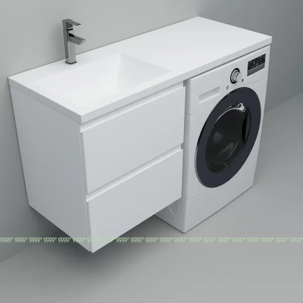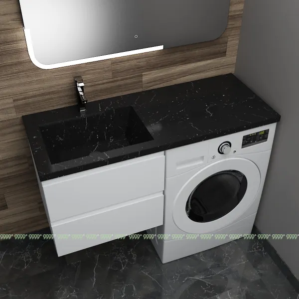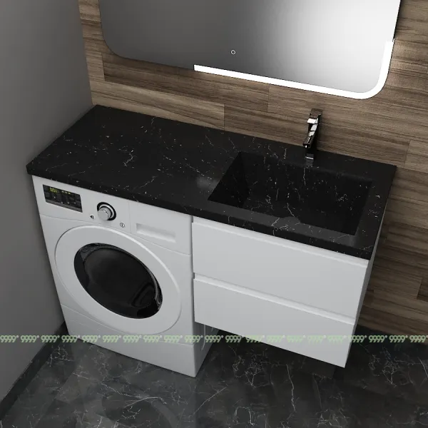 Монтаж умывальника со столешницей из литьевого мрамора над стиральной машиной.