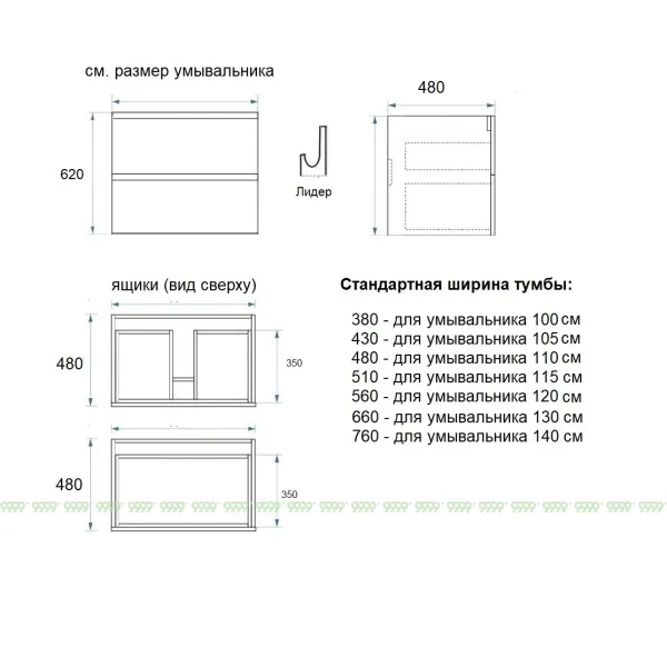 Умывальник в размере 100 см(левый или правый) приобретается отдельно (цену уточнять у менеджера).