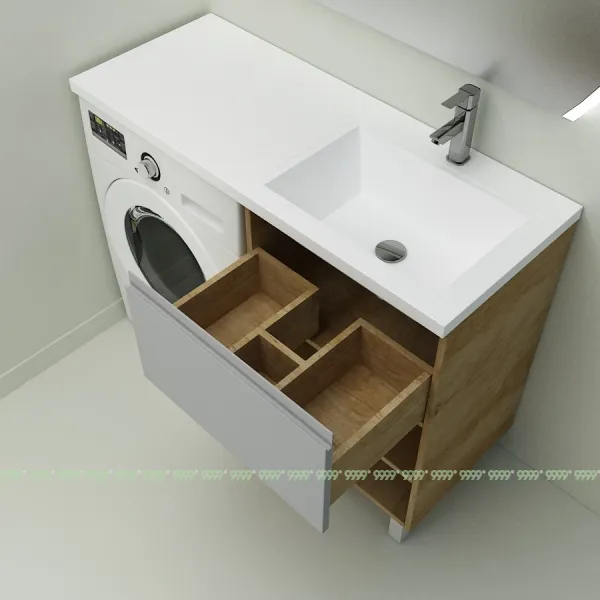 Создает единую поверхность стиральной машины и тумбы, без перепадов и зазоров. Не дает каплям воды попадать на поверхность тумбы, сохраняя ее первозданный вид, без разрушения.