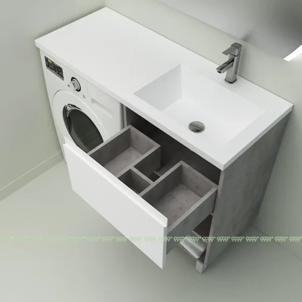Создает единую поверхность стиральной машины и тумбы, без перепадов и зазоров. Не дает каплям воды попадать на поверхность тумбы, сохраняя ее первозданный вид, без разрушения.