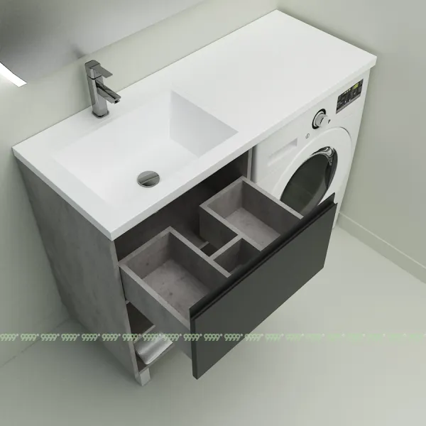 Создает единую поверхность стиральной машины и тумбы, без перепадов и зазоров. Не дает каплям воды попадать на поверхность тумбы, сохраняя ее первозданный вид, без разрушения.