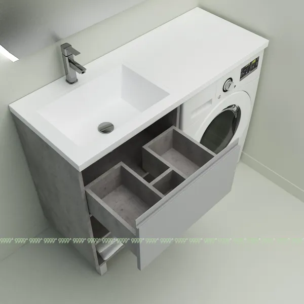 Создает единую поверхность стиральной машины и тумбы, без перепадов и зазоров. Не дает каплям воды попадать на поверхность тумбы, сохраняя ее первозданный вид, без разрушения.