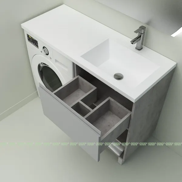 Создает единую поверхность стиральной машины и тумбы, без перепадов и зазоров. Не дает каплям воды попадать на поверхность тумбы, сохраняя ее первозданный вид, без разрушения.