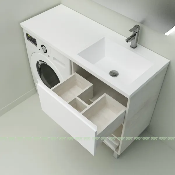 Создает единую поверхность стиральной машины и тумбы, без перепадов и зазоров. Не дает каплям воды попадать на поверхность тумбы, сохраняя ее первозданный вид, без разрушения.
