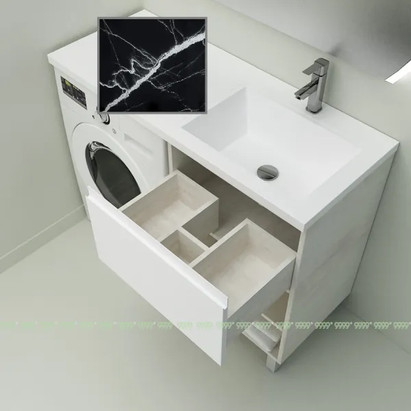Создает единую поверхность стиральной машины и тумбы, без перепадов и зазоров. Не дает каплям воды попадать на поверхность тумбы, сохраняя ее первозданный вид, без разрушения.