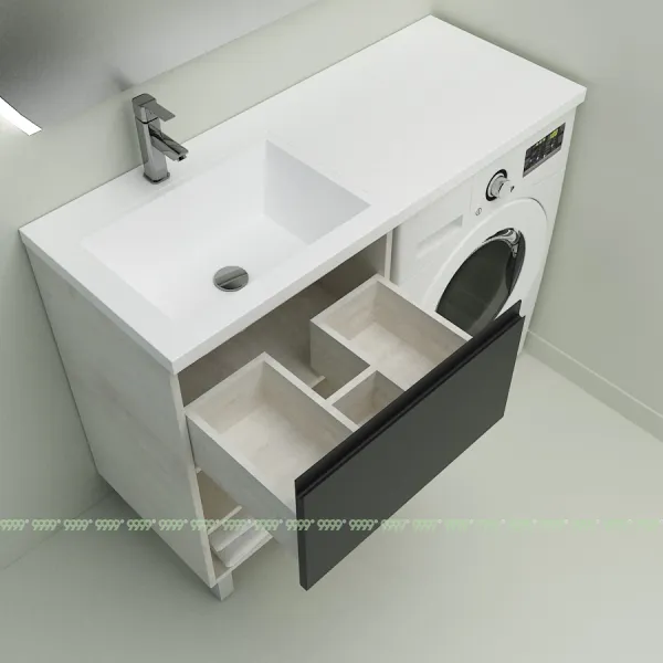 Создает единую поверхность стиральной машины и тумбы, без перепадов и зазоров. Не дает каплям воды попадать на поверхность тумбы, сохраняя ее первозданный вид, без разрушения.