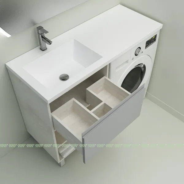 Создает единую поверхность стиральной машины и тумбы, без перепадов и зазоров. Не дает каплям воды попадать на поверхность тумбы, сохраняя ее первозданный вид, без разрушения.