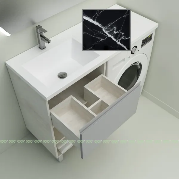 Создает единую поверхность стиральной машины и тумбы, без перепадов и зазоров. Не дает каплям воды попадать на поверхность тумбы, сохраняя ее первозданный вид, без разрушения.