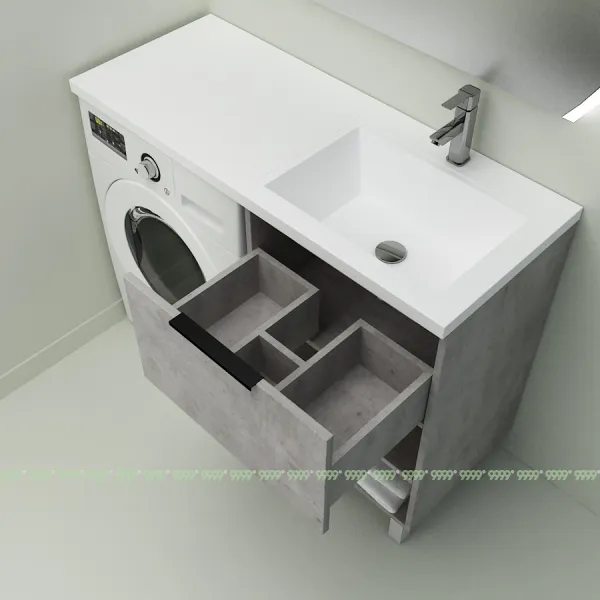 Создает единую поверхность стиральной машины и тумбы, без перепадов и зазоров. Не дает каплям воды попадать на поверхность тумбы, сохраняя ее первозданный вид, без разрушения.