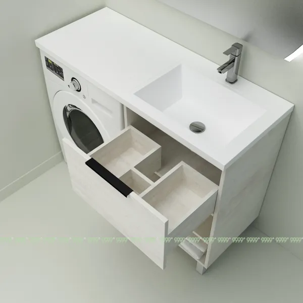 Создает единую поверхность стиральной машины и тумбы, без перепадов и зазоров. Не дает каплям воды попадать на поверхность тумбы, сохраняя ее первозданный вид, без разрушения.