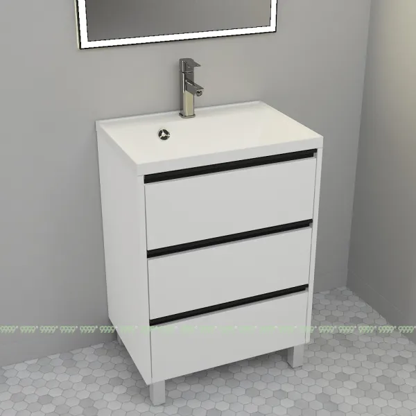 Мебель для ванной: тумбы, пеналы, шкафчики и т.д поставляются в СОБРАННОМ ВИДЕ (кроме накладных ручек и ножек, если таковые есть в модели, они прикручиваются самостоятельно), столешницы под врезной или накладной умывальник изготавливаются БЕЗ ВЫРЕЗОВ под умывальник и смеситель (все вырезы производятся самостоятельно после монтажа столешницы на опоры (тумбу, кронштейны, уголки и т.д.) или оплачиваются дополнительно, но только после согласования)