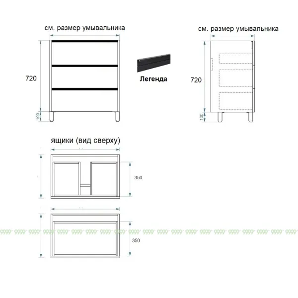 функционал: напольная тумба, 3 выдвижных ящика с плавным ходом и закрыванием (доводчики нижнего монтажа - Boyard).