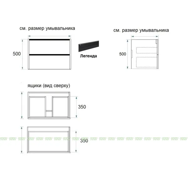 Мебель для ванной: тумбы, пеналы, шкафчики и т.д поставляются в СОБРАННОМ ВИДЕ (кроме накладных ручек и ножек, если таковые есть в модели, они прикручиваются самостоятельно), столешницы под врезной или накладной умывальник изготавливаются БЕЗ ВЫРЕЗОВ под умывальник и смеситель (все вырезы производятся самостоятельно после монтажа столешницы на опоры (тумбу, кронштейны, уголки и т.д.) или оплачиваются дополнительно, но только после согласования)