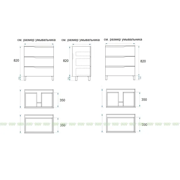 Мебель для ванной: тумбы, пеналы, шкафчики и т.д поставляются в СОБРАННОМ ВИДЕ (кроме накладных ручек и ножек, если таковые есть в модели, они прикручиваются самостоятельно), столешницы под врезной или накладной умывальник изготавливаются БЕЗ ВЫРЕЗОВ под умывальник и смеситель (все вырезы производятся самостоятельно после монтажа столешницы на опоры (тумбу, кронштейны, уголки и т.д.) или оплачиваются дополнительно, но только после согласования)