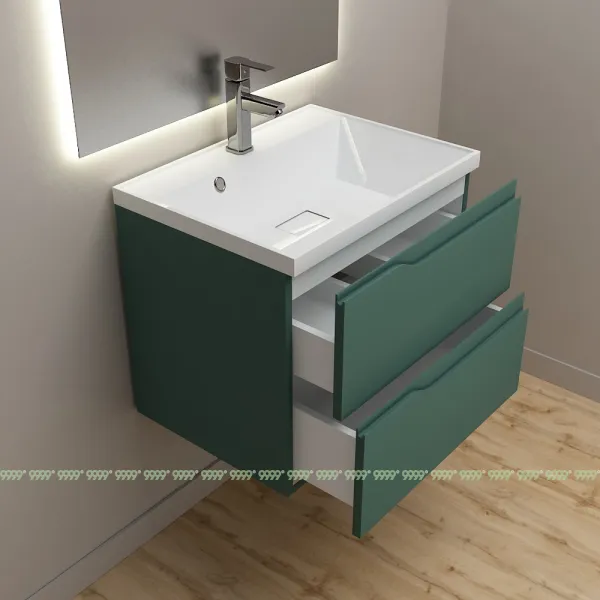 функционал: подвесная тумба, 2 выдвижных ящика с плавным ходом и закрыванием (доводчики нижнего монтажа - Boyard).