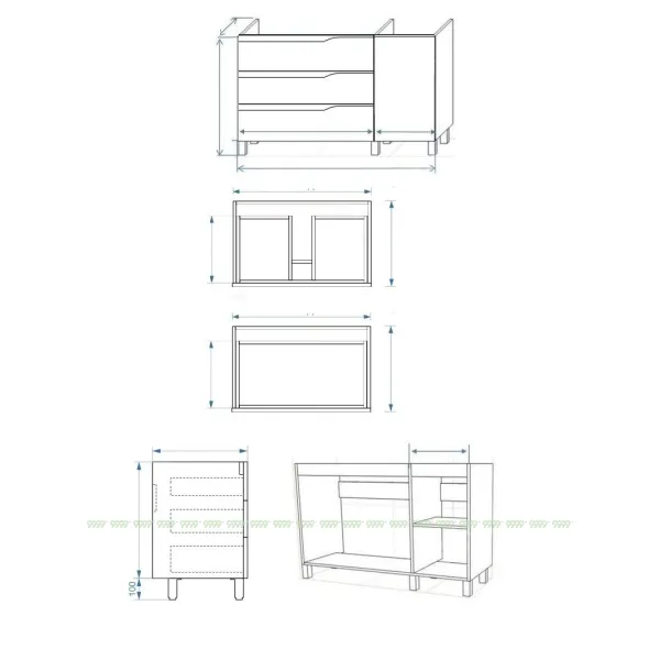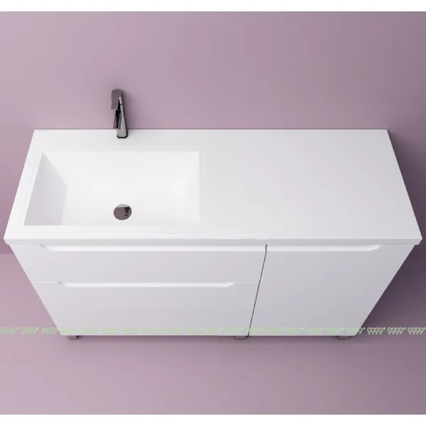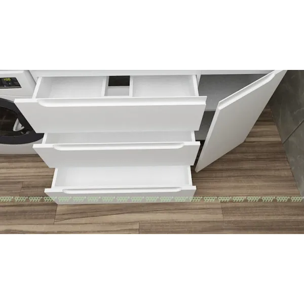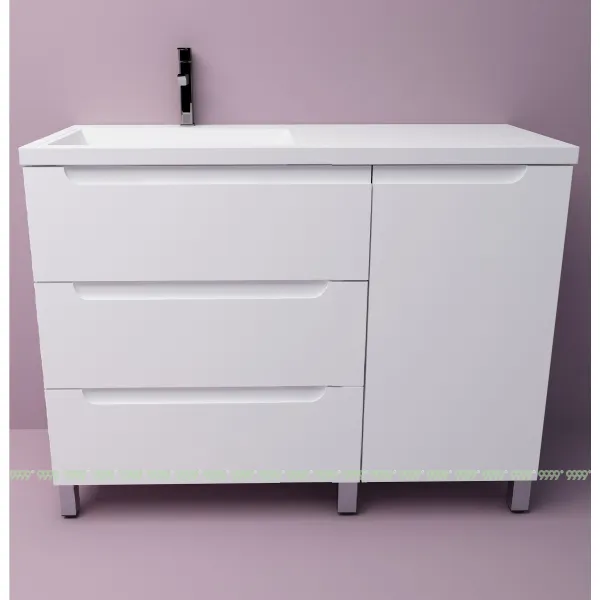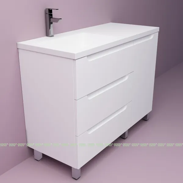 функционал: напольная тумба, 3 выдвижных ящика и 1 дверца с плавным ходом и закрыванием (доводчики нижнего монтажа - Boyard), 1 полка.