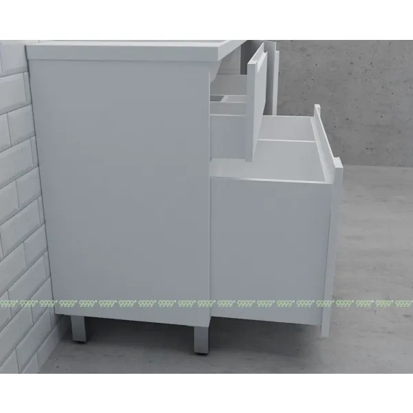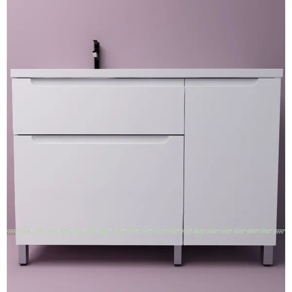 функционал: напольная тумба, 2 выдвижных ящика (нижний ящик можно использовать как корзину для белья), 1 дверца с плавным ходом и закрыванием (доводчики нижнего монтажа - Boyard), 1 полка.