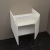 - Напольная тумба устанавливается на пол на ножки (высота регулируется +25 мм). Боковые стенки тумбы должны вплотную прилегать к стене! Для надежности конструкции тумбу рекомендуем закрепить вплотную к стене насквозь подходящими саморезами через закладную деталь (расположенную на задней части тумбы) примыкающую к стене.
