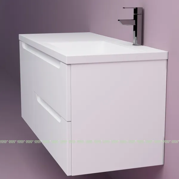 функционал: подвесная тумба, 3 выдвижных ящика с плавным ходом и закрыванием (доводчики нижнего монтажа - Boyard), боковой ящик можно использовать как корзина для белья.
