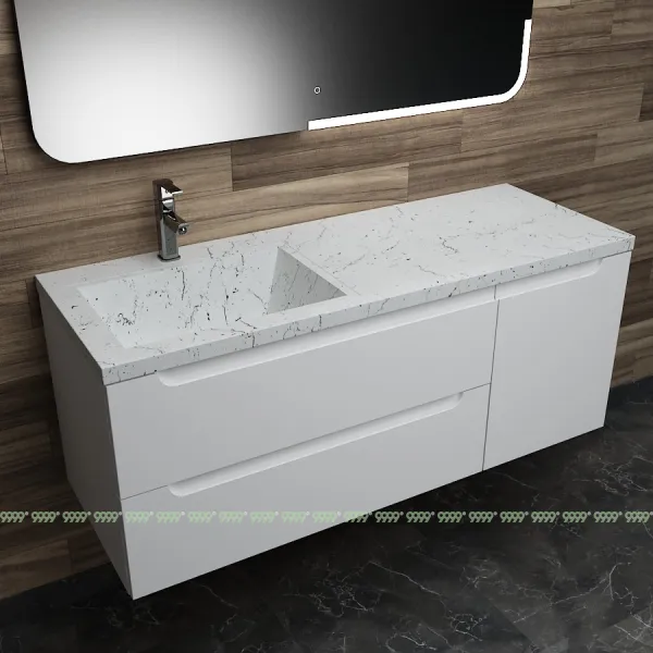 Тумба с умывальником Дана Венеция Люкс 130 подвесная на 2 ящика (цвет белый/белый мрамор) чаша слева