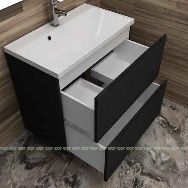 функционал: напольная тумба, 2 выдвижных ящика с плавным ходом и закрыванием (доводчики нижнего монтажа - Boyard).