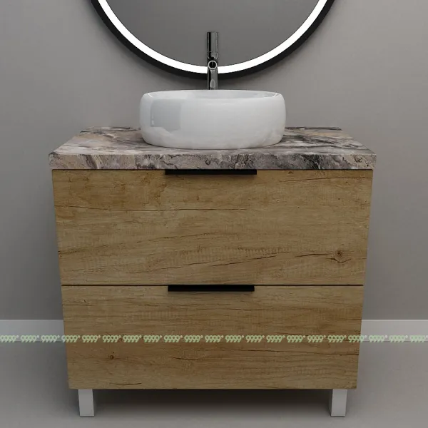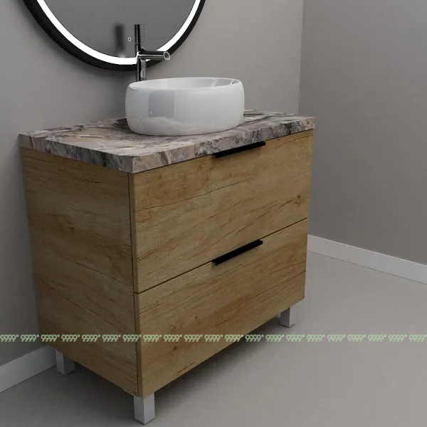 Мебель для ванной: тумбы, пеналы, шкафчики и т.д поставляются в СОБРАННОМ ВИДЕ (кроме накладных ручек и ножек, если таковые есть в модели, они прикручиваются самостоятельно), столешницы под врезной или накладной умывальник изготавливаются БЕЗ ВЫРЕЗОВ под умывальник и смеситель (все вырезы производятся самостоятельно после монтажа столешницы на опоры (тумбу, кронштейны, уголки и т.д.) или оплачиваются дополнительно, но только после согласования)