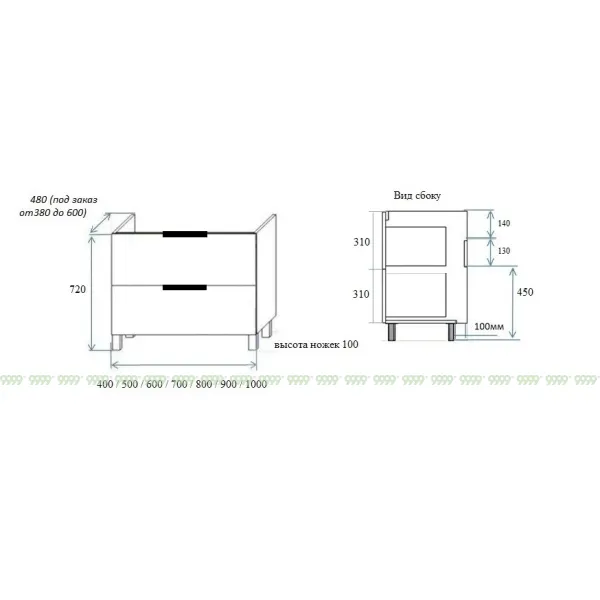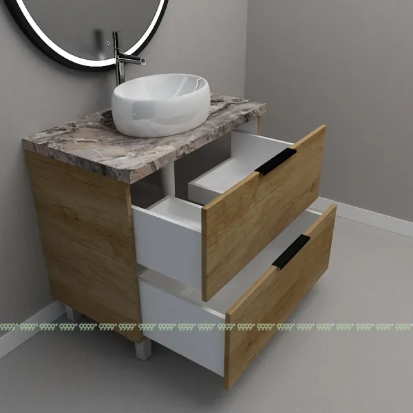 функционал: напольная тумба, 2 выдвижных ящика с плавным ходом и закрыванием (доводчики нижнего монтажа - Boyard).