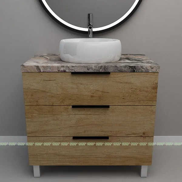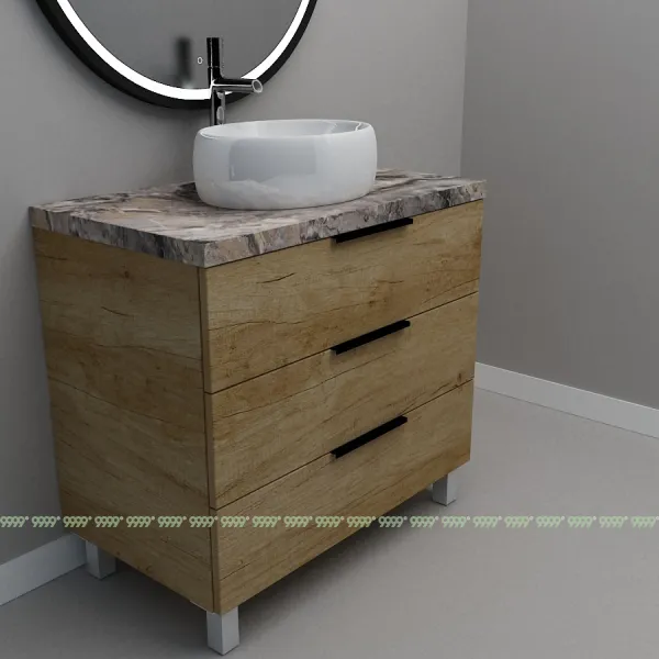 Мебель для ванной: тумбы, пеналы, шкафчики и т.д поставляются в СОБРАННОМ ВИДЕ (кроме накладных ручек и ножек, если таковые есть в модели, они прикручиваются самостоятельно), столешницы под врезной или накладной умывальник изготавливаются БЕЗ ВЫРЕЗОВ под умывальник и смеситель (все вырезы производятся самостоятельно после монтажа столешницы на опоры (тумбу, кронштейны, уголки и т.д.) или оплачиваются дополнительно, но только после согласования)