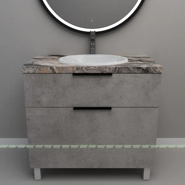 Тумба со столешницей Дана Каскад Топ 40, 50, 60, 70, 80, 90, 100 напольная на 2 ящика с корзиной (цвет бетон чикаго светло-серый)