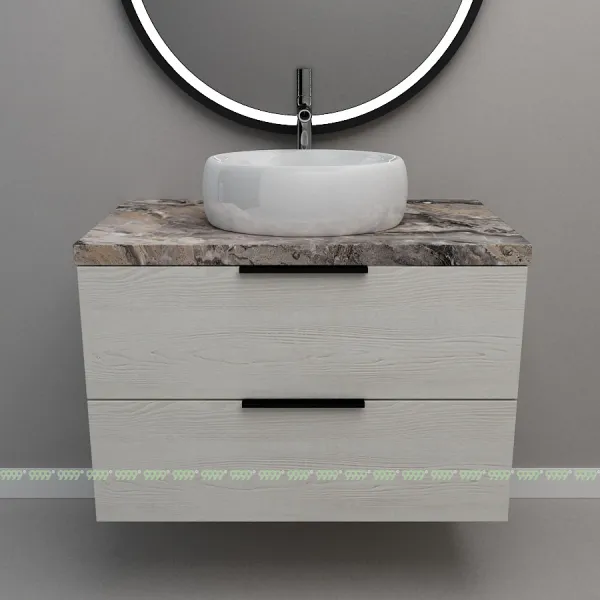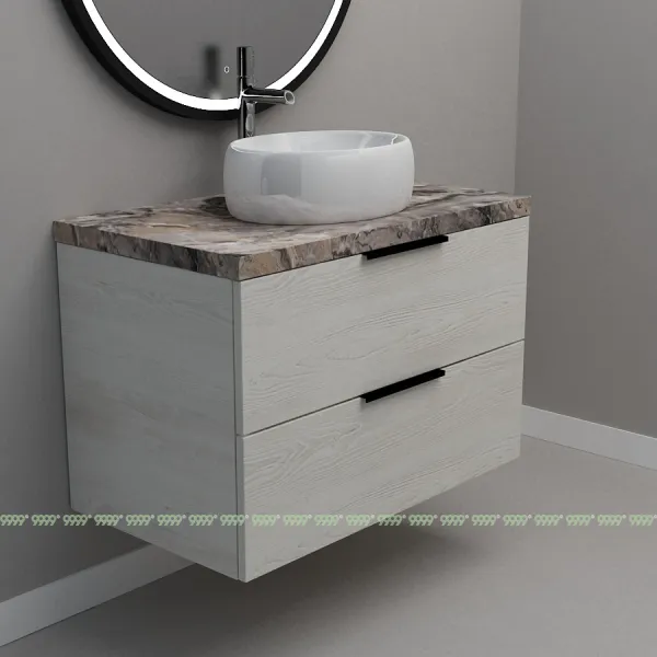 Мебель для ванной: тумбы, пеналы, шкафчики и т.д поставляются в СОБРАННОМ ВИДЕ (кроме накладных ручек и ножек, если таковые есть в модели, они прикручиваются самостоятельно), столешницы под врезной или накладной умывальник изготавливаются БЕЗ ВЫРЕЗОВ под умывальник и смеситель (все вырезы производятся самостоятельно после монтажа столешницы на опоры (тумбу, кронштейны, уголки и т.д.) или оплачиваются дополнительно, но только после согласования)