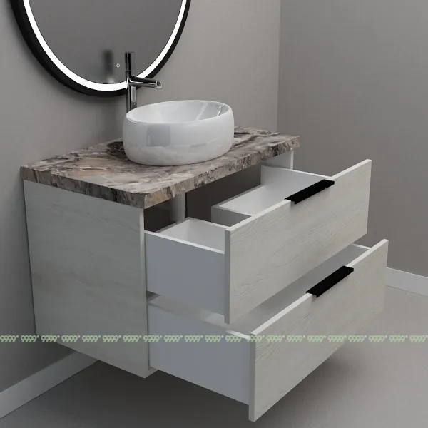 функционал: подвесная тумба, 2 выдвижных ящика с плавным ходом и закрыванием (доводчики нижнего монтажа - Boyard).