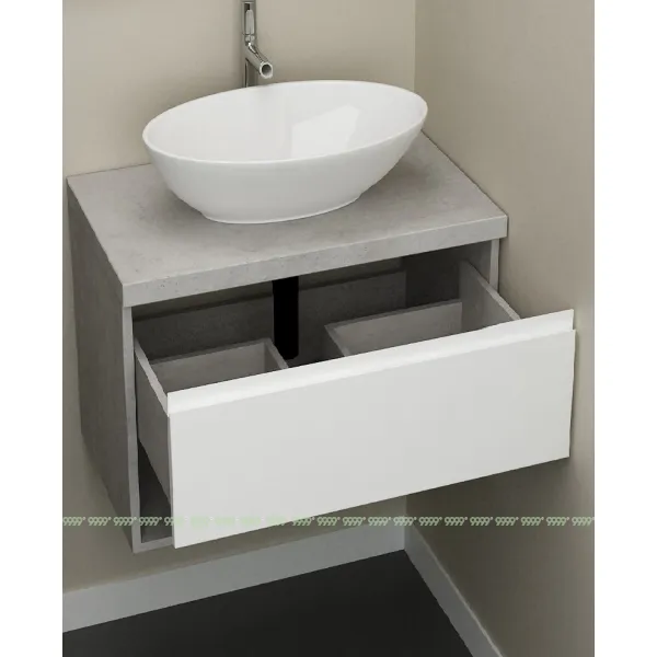 Функционал: подвесная тумба, 1 выдвижной ящик с плавным ходом и закрыванием (доводчики нижнего монтажа : Boyard), открытая полка.