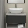 Мебель для ванной: тумбы, пеналы, шкафчики и т.д поставляются в СОБРАННОМ ВИДЕ (кроме накладных ручек и ножек, если таковые есть в модели, они прикручиваются самостоятельно), столешницы под врезной или накладной умывальник изготавливаются БЕЗ ВЫРЕЗОВ под умывальник и смеситель (все вырезы производятся самостоятельно после монтажа столешницы на опоры (тумбу, кронштейны, уголки и т.д.) или оплачиваются дополнительно, но только после согласования)