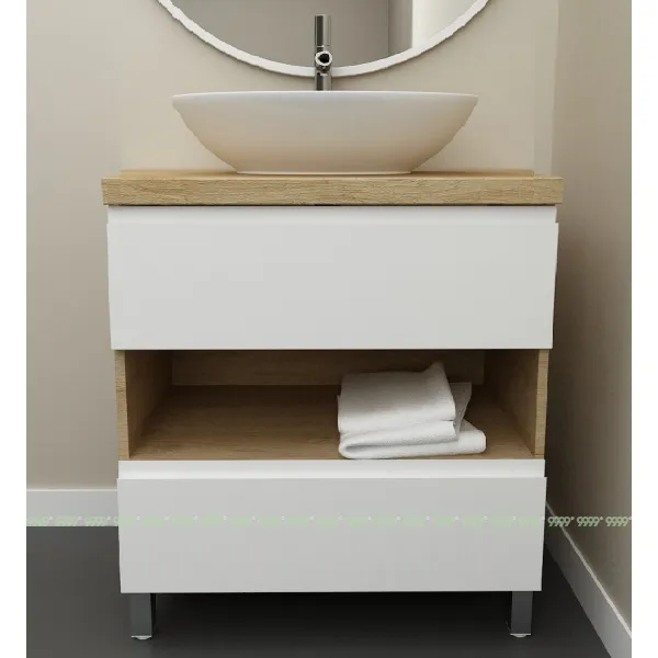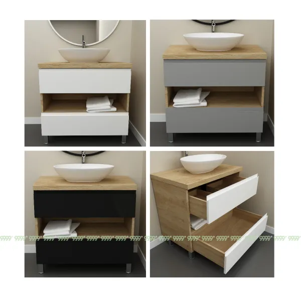 Мебель для ванной: тумбы, пеналы, шкафчики и т.д поставляются в СОБРАННОМ ВИДЕ (кроме накладных ручек и ножек, если таковые есть в модели, они прикручиваются самостоятельно), столешницы под врезной или накладной умывальник изготавливаются БЕЗ ВЫРЕЗОВ под умывальник и смеситель (все вырезы производятся самостоятельно после монтажа столешницы на опоры (тумбу, кронштейны, уголки и т.д.) или оплачиваются дополнительно, но только после согласования)