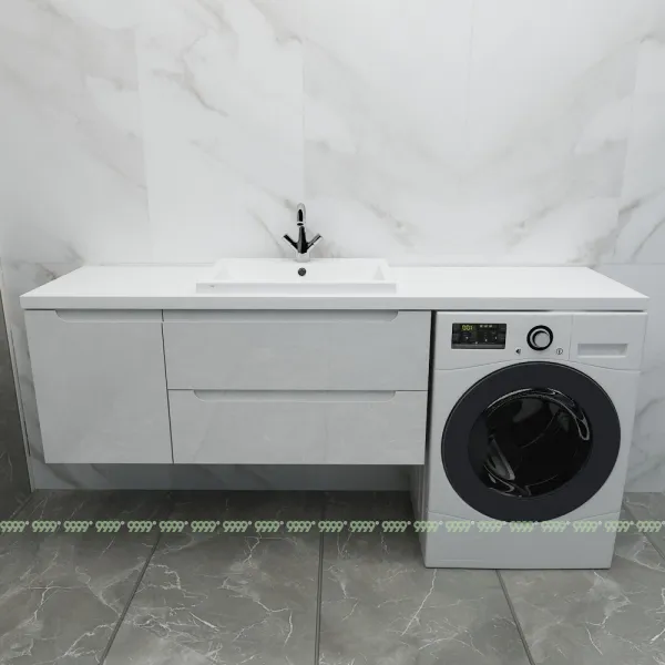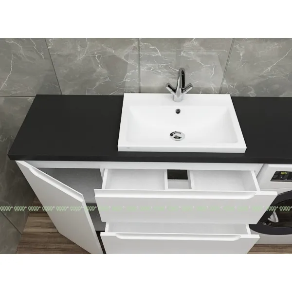 Тумба со столешницей Дана Венеция Топ 140 подвесная на 2 ящика (цвет белый) ящики справа (под стиральную машину)