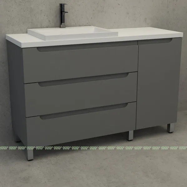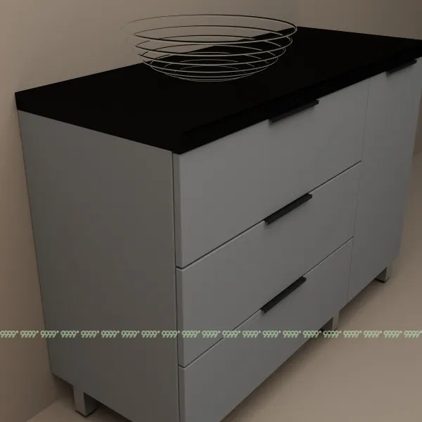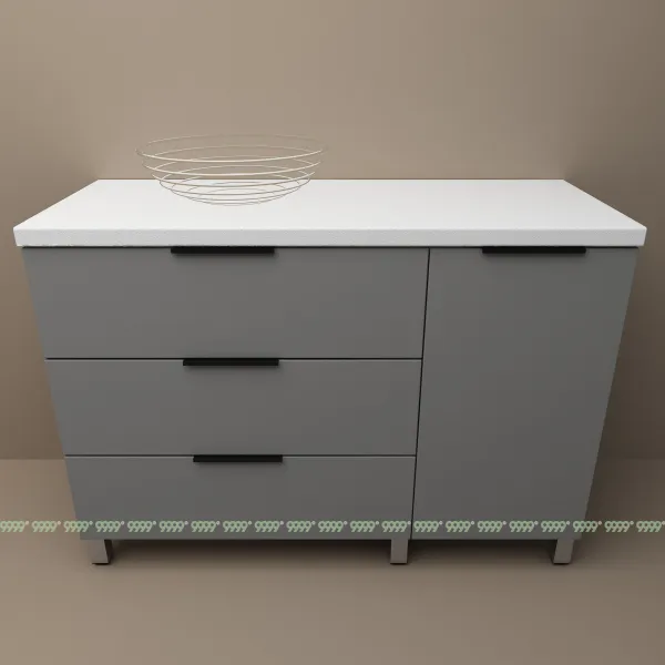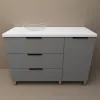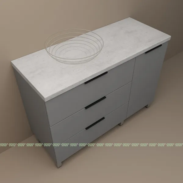 функционал: напольная тумба, 3 выдвижных ящика и 1 дверца с плавным ходом и закрыванием (доводчики нижнего монтажа - Boyard), 1 полка.