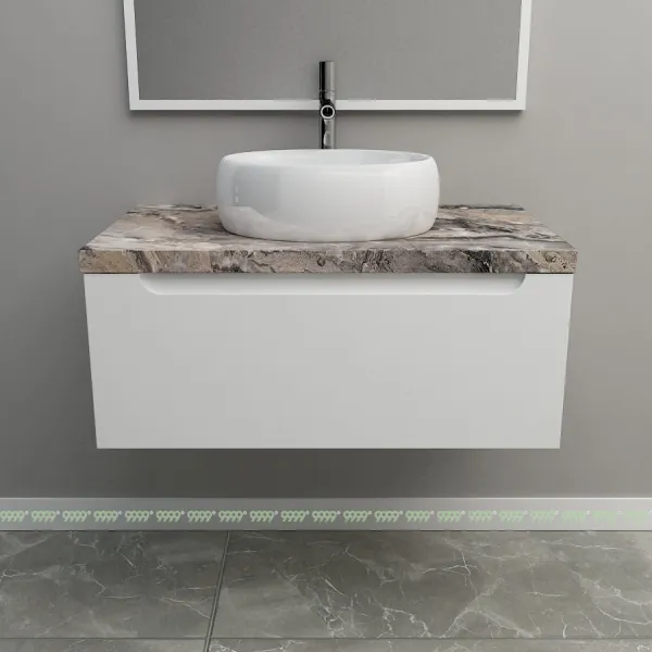 функционал: подвесная тумба, 1 выдвижной ящик с плавным ходом и закрыванием (доводчики нижнего монтажа - Boyard).