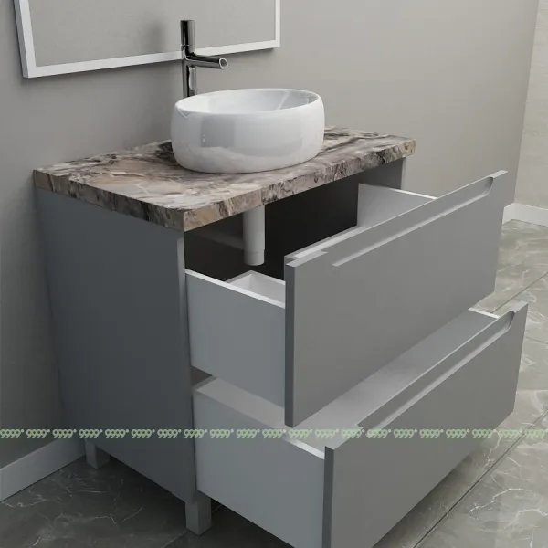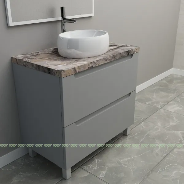 Мебель для ванной: тумбы, пеналы, шкафчики и т.д поставляются в СОБРАННОМ ВИДЕ (кроме накладных ручек и ножек, если таковые есть в модели, они прикручиваются самостоятельно), столешницы под врезной или накладной умывальник изготавливаются БЕЗ ВЫРЕЗОВ под умывальник и смеситель (все вырезы производятся самостоятельно после монтажа столешницы на опоры (тумбу, кронштейны, уголки и т.д.) или оплачиваются дополнительно, но только после согласования)