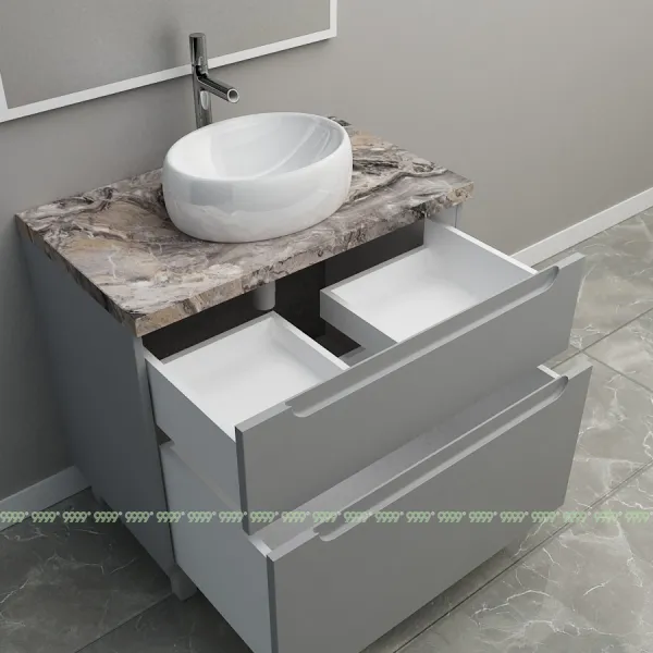 Мебель для ванной: тумбы, пеналы, шкафчики и т.д поставляются в СОБРАННОМ ВИДЕ (кроме накладных ручек и ножек, если таковые есть в модели, они прикручиваются самостоятельно), столешницы под врезной или накладной умывальник изготавливаются БЕЗ ВЫРЕЗОВ под умывальник и смеситель (все вырезы производятся самостоятельно после монтажа столешницы на опоры (тумбу, кронштейны, уголки и т.д.) или оплачиваются дополнительно, но только после согласования)