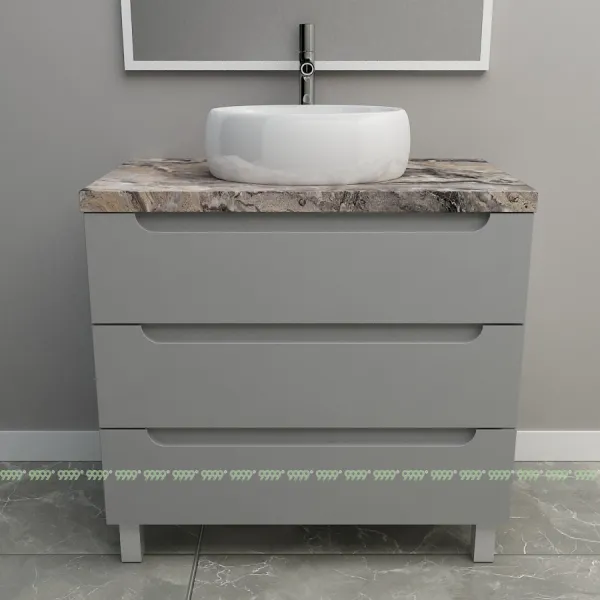 Мебель для ванной: тумбы, пеналы, шкафчики и т.д поставляются в СОБРАННОМ ВИДЕ (кроме накладных ручек и ножек, если таковые есть в модели, они прикручиваются самостоятельно), столешницы под врезной или накладной умывальник изготавливаются БЕЗ ВЫРЕЗОВ под умывальник и смеситель (все вырезы производятся самостоятельно после монтажа столешницы на опоры (тумбу, кронштейны, уголки и т.д.) или оплачиваются дополнительно, но только после согласования)