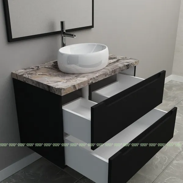 Мебель для ванной: тумбы, пеналы, шкафчики и т.д поставляются в СОБРАННОМ ВИДЕ (кроме накладных ручек и ножек, если таковые есть в модели, они прикручиваются самостоятельно), столешницы под врезной или накладной умывальник изготавливаются БЕЗ ВЫРЕЗОВ под умывальник и смеситель (все вырезы производятся самостоятельно после монтажа столешницы на опоры (тумбу, кронштейны, уголки и т.д.) или оплачиваются дополнительно, но только после согласования)