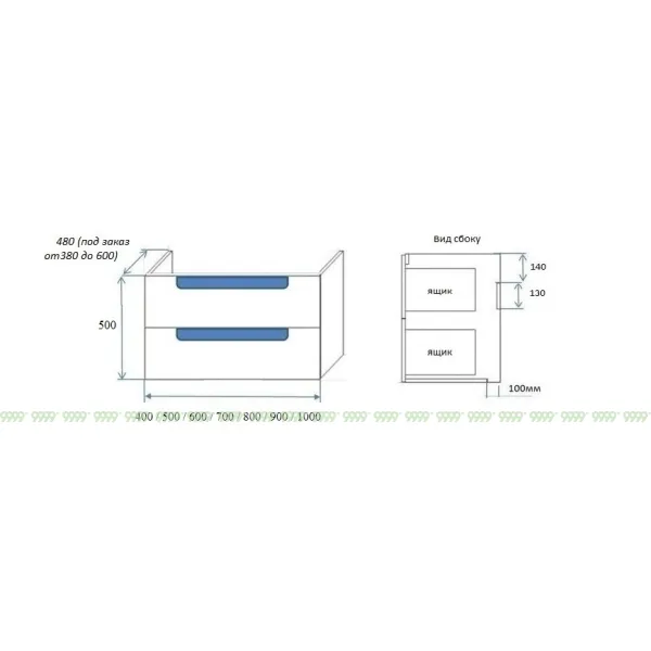 функционал: подвесная тумба, 2 выдвижных ящика с плавным ходом и закрыванием (доводчики нижнего монтажа - Boyard).
